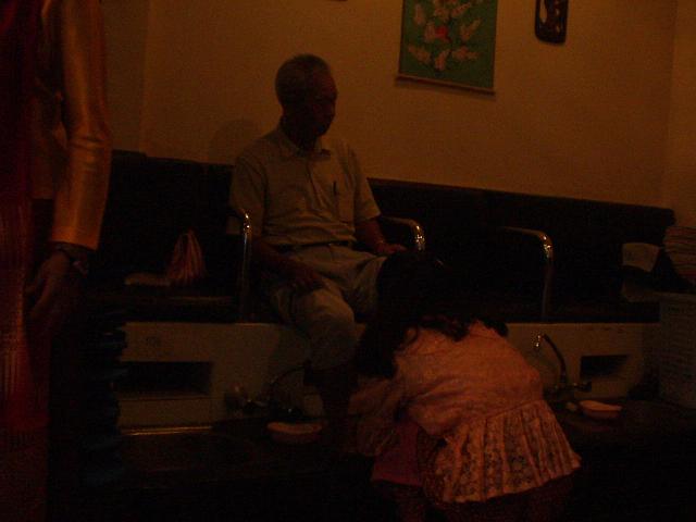 順番が来るとまず履物を脱いで足を洗ってもらう。専用の洗い場があって、