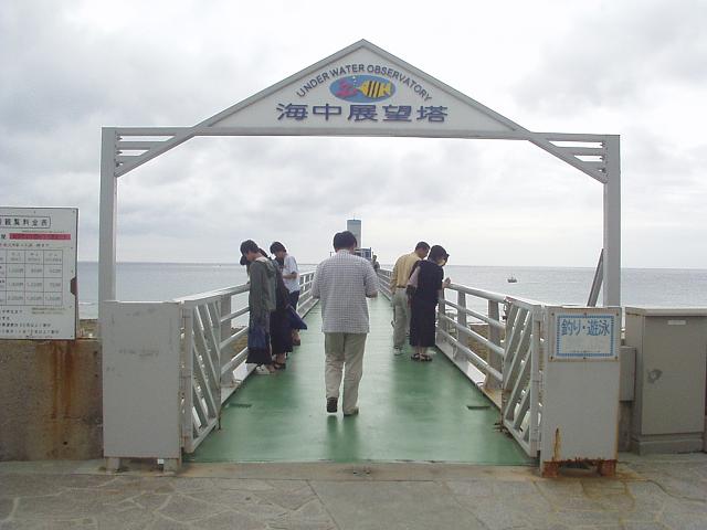 やんばる保護センターを後にし、海中展望塔へ。海岸から突き出た桟橋の先にある塔を海底近くまで降りて行って、ぐるり360度