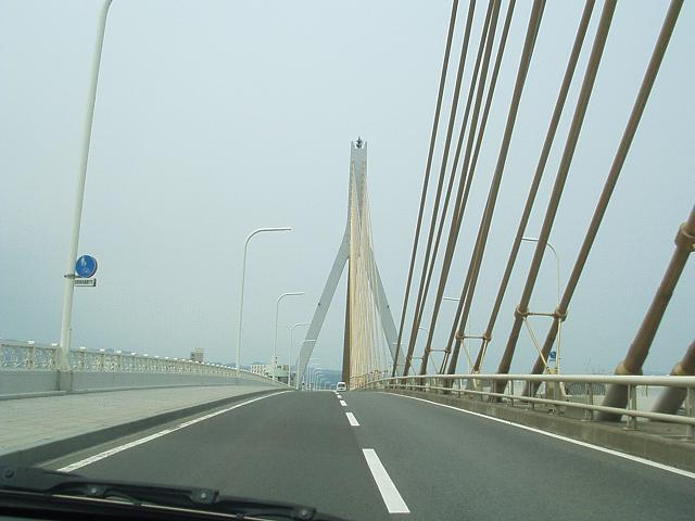 ベイブリッジ、ひたすらまっすぐの国道、昼食の支那そば、対岸の下北半島