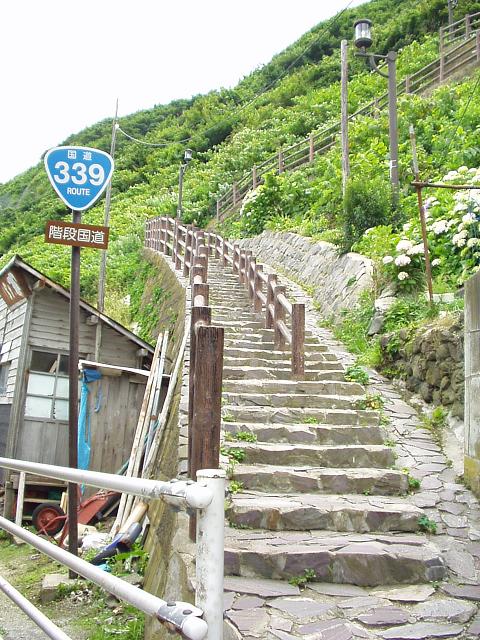 変わった場所がある。何でも役人が現地を見ずに階段を「国道」と認定してしまったために起きた珍事だそうで、岬の上に続く斜面の階段に