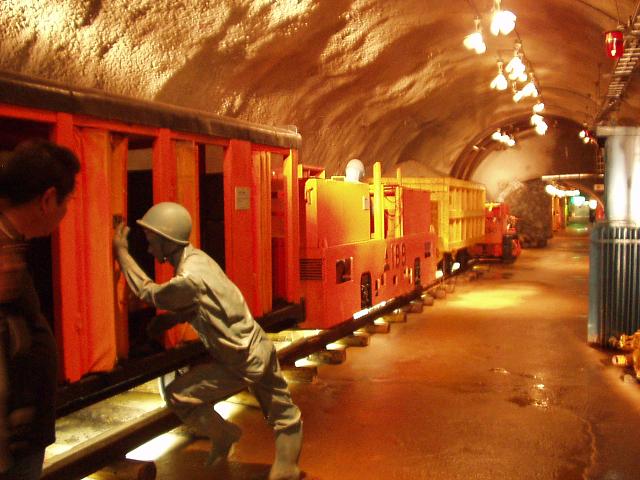 という看板も見られた。20分ほど坑道を見て回り、再びケーブルカーで地上へ戻り、約40分のコースを終えた。