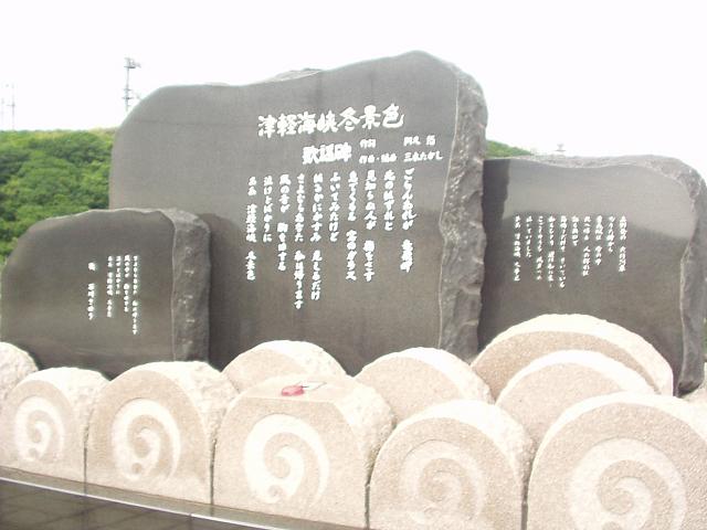 この曲であることは疑いようもないが、歌詞の2番(ごらんあれが竜飛岬〜)が大きく強調された石碑と、歌碑の前にあるボタンを押すと