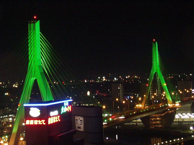 夜の青森市街、観光物産館アスパム、ベイブリッジ、お粗末な夜景