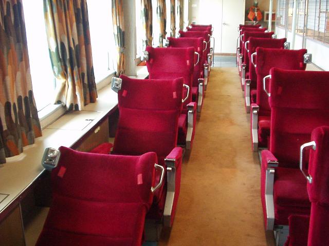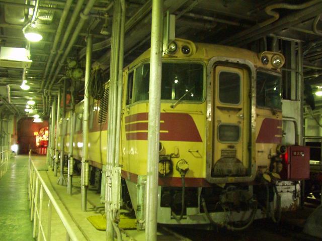 エレベーターで船底に下りると、当時のままのディーゼル機関車、郵便専用車、特急列車の客車などが展示されている。間近で見ると