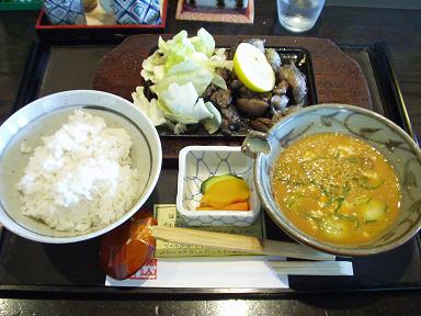 スカイネットの本拠地です、郷土料理の魚山亭、宮崎地鶏焼きと冷汁