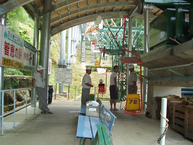続いて「股覗き」で有名な山に登ってみる。展望台までは片道8分のリフトが運行されており、涼しくなりかけた時間帯に乗ると、