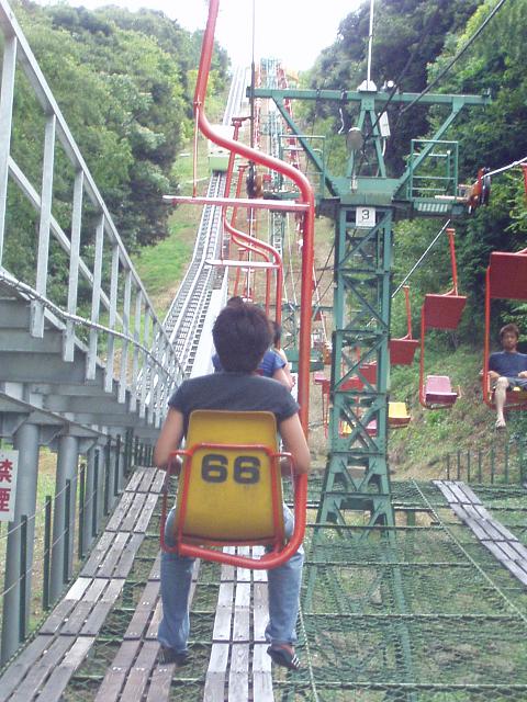 風がとても心地よい。(スキーができない私はリフトがとても珍し かった)