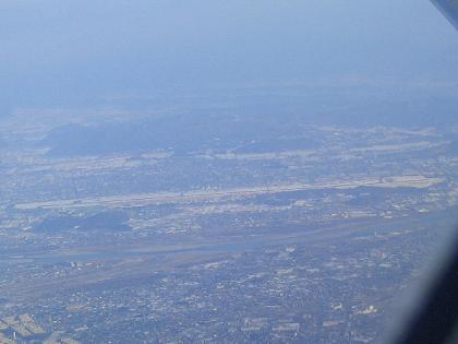 MD80搭乗、各務原基地の滑走路、宮崎空港を上空から