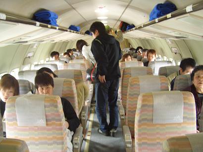 コンパクトな機内、テイクオフ!、鹿児島空港上空を旋回して