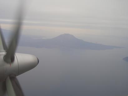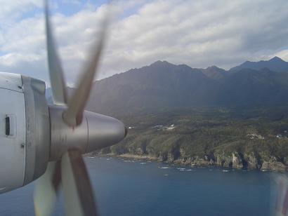 桜島上空、屋久島へアプローチ、屋久島空港