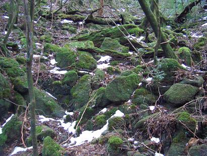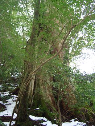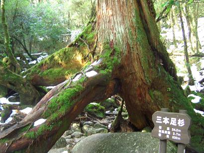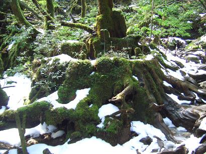 二代大杉、雪と苔の間を抜けて・・・、三本足杉