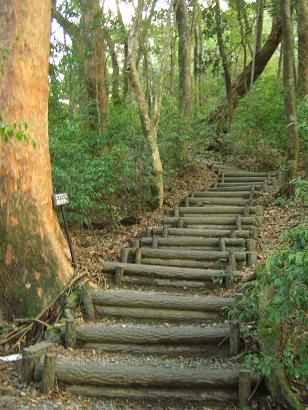 階段を上って・・・、弥生杉、昨年の台風で崩落してました、下山時はもう夕方でした