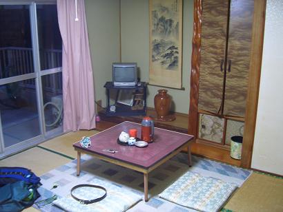 屋久島一泊の宿『水明荘』、民宿らしい部屋、季節外れだから貸しきり風呂