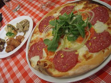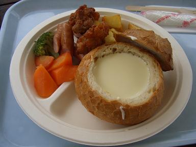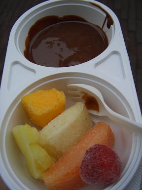 昼食、チョコレートの滝、チョコフルーツ、夕食のピッツァ