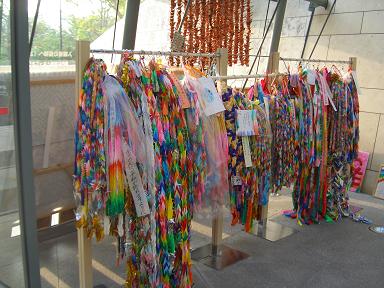長崎駅前、原爆資料館、千羽鶴たくさん