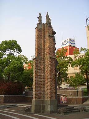 爆心地、わずかに残った柱、平和祈念像、浦上天主堂