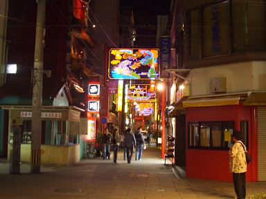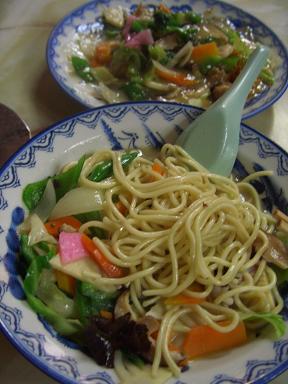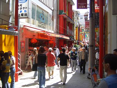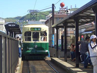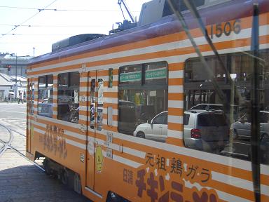 昼の中華街、ちゃんぽん、路面電車、こんなカラーリングも