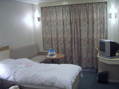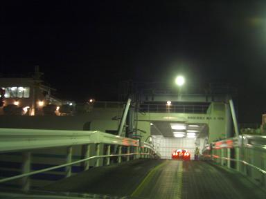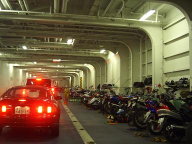いよいよ車で乗船、船内の駐車スペース、特等A船室(普通のビジネスホテル並!)