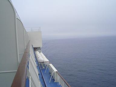 部屋のテラスから、反対方向の船とすれ違います、船尾の売店