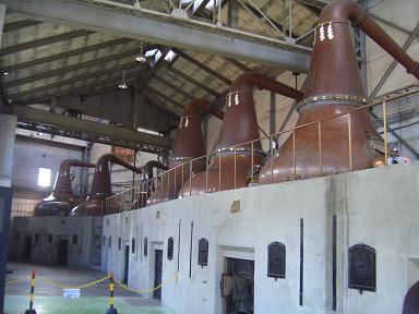 ポットスチル、一号貯蔵庫、博物館内のウィスキー倶楽部(試飲コーナー。車だったので・・・)