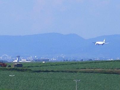 旭川空港にアプローチ中のエヴァ・エアー、セブンスターの木