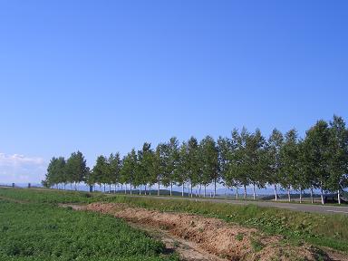 美唄の直線日本一国道、ケンメリの木8月・5月(こう見ると5月は寂しい・・・)