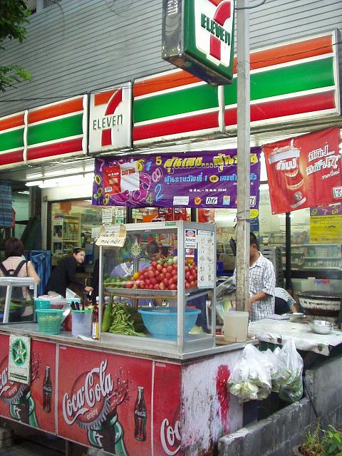 ホテルから見た風景&歩道に並ぶ屋台&セブンイレブン