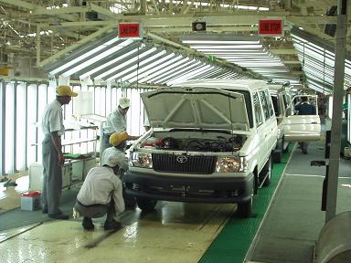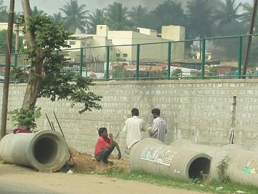 街の様子、工事現場、工場の作業員です(帽子も作業着もなく座って作業・・・)