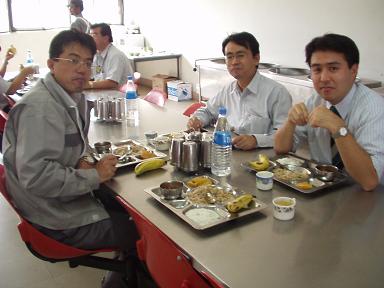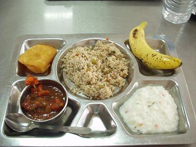 食堂、標準的な昼食、先輩とインド料理を囲んで