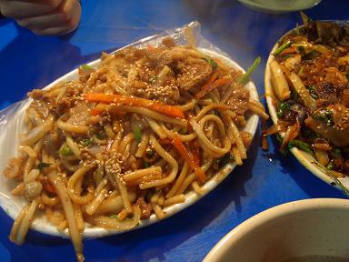 スープ、ホルモン炒め、トッポギ、焼きうどん(味はそれなり・・・)