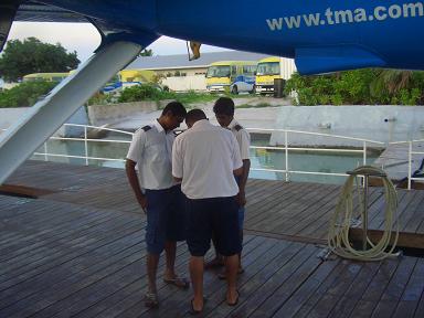 無事着水(これも意外に滑らか)、海に浮かんでいる筏で待っていると、船が迎えに来ます