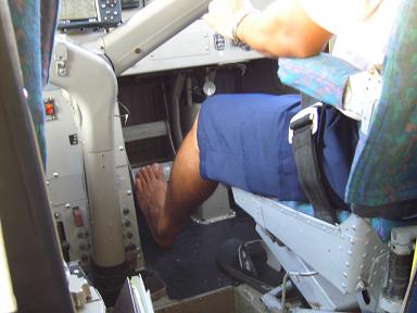 裸足で操縦(!)、リゾートへ旋回〜、目的地のリゾートが見えてきた!