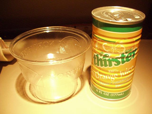 サービスが悪いと評判の?ノースウェストの約1時間のフライトでも 一応はドリンクはサービスされた。 |
