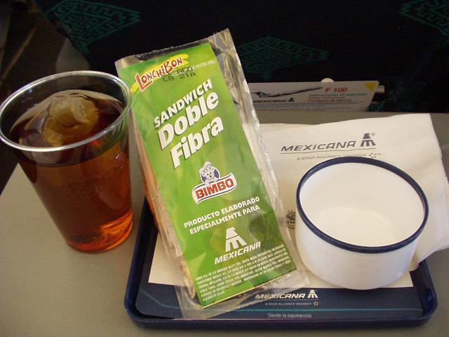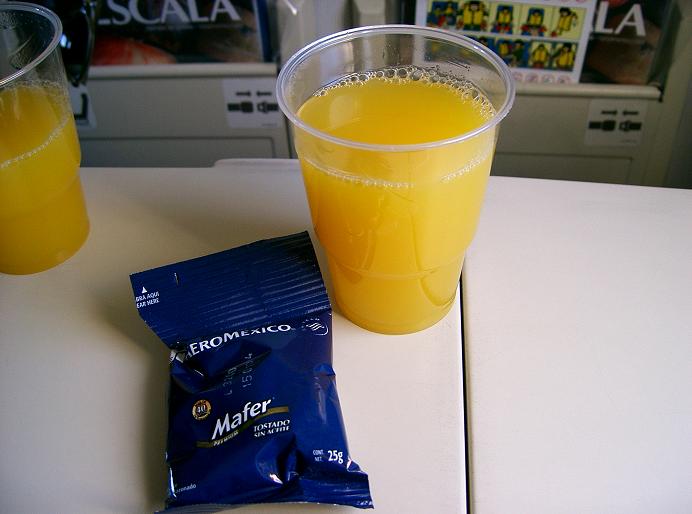 同じ旅、エアロ・メヒコのメキシコ−アカプルコ便では、 フライト時間50分にもかかわらずちゃんとドリンクサービスがあった。 |