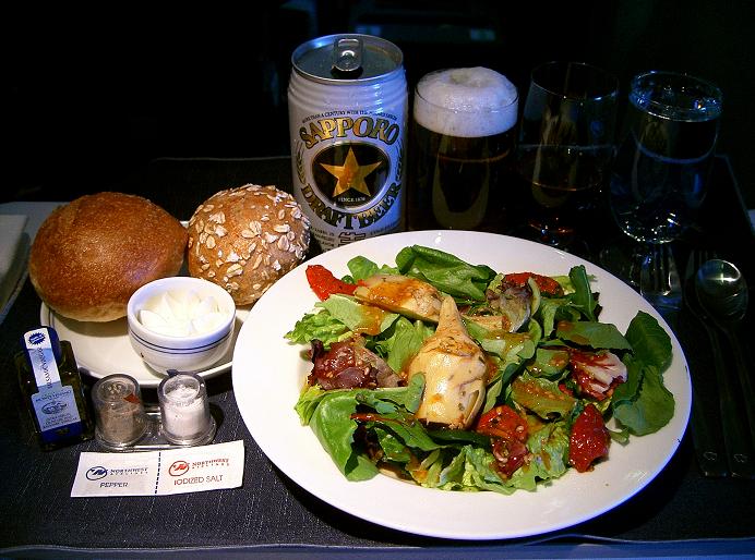 久し振りのANA。ドリンクサービスでは思わずスープをオーダー。 取り立てて美味というわけではないけどなぜかたまに飲みたくなる味だ。 |