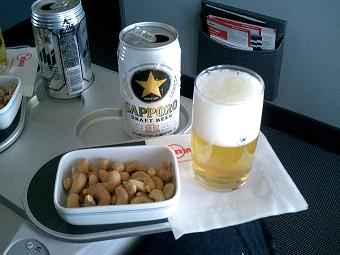 今回唯一充実していたのが間食。JALですかいシリーズの他に、 ミニ丼やそばが用意されていたのは少しびっくりした。 一方リフレッシュメントは和食にしようと思ったら案の定?品切れ。 そりゃ確かに昼食であの洋食の質を見せられたら 誰でも次は和食にしたくなるわと妙に納得してしまった。 お詫びに間食用のそばを配っていたところで 何とかJALのサービスの面目を保っていたというところか。 |