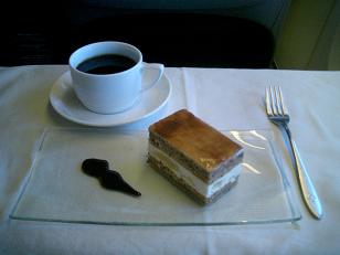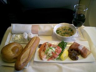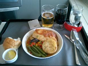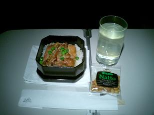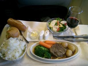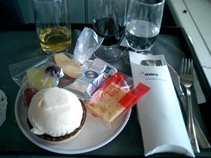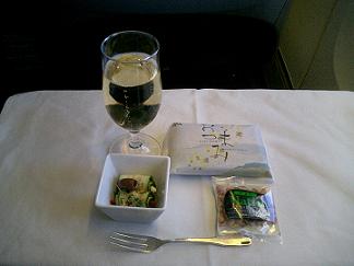 北米出張の帰り便は名古屋直行便が取れずJALで成田経由に。 4年前のJALビジネスの記憶もあり、ミールの質にはおおいに期待していたが、 これが何とも期待外れ。JALも焼きが回ったかついにミールの質に手を付けてしまったらしい。 ついでにサービスの質にも手を付けたらしく、食後のチーズやカクテルも ワゴンに乗せては来るが、薦めないどころかデザートを出したら 声をかける間もなくさっさと行ってしまう。あれはただの飾りだったんだろうか??? |