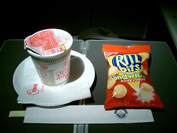 おにぎり、カップラーメンの間食は以前と変わらず。 選べない上にハイカロリーなアメ食のリフレッシュメントも相変わらず。 選べなくても当然、という顔で「ソーリー」の一言もない。 この航空会社は「サービス」とは一体何ととらえているのだろうか。 |