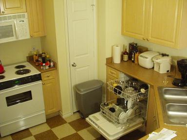 屋根があるので雪かきいらず。台所は食器洗い機、電子レンジ、オーブン、