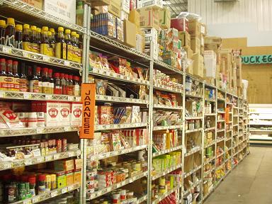とうふ、味噌、うどん、コメから納豆、どら焼き、かまぼこ、きのこの山に至るまでナマ物以外は揃う。