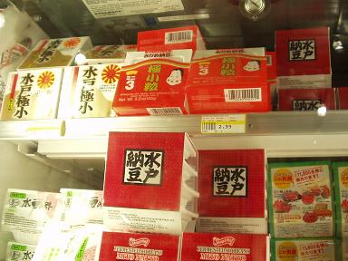 現地調達のうどん・ねぎ・めんつゆ・わさび ジャングルジムズの日本食材コーナー 冷凍納豆