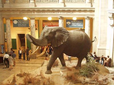 スミソニアン自然史博物館、ゾウがお出迎え、化石