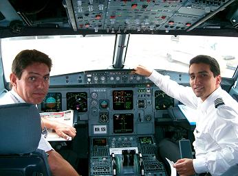 気さくにコックピットを見せてくれたクルー、アンデス山脈上空