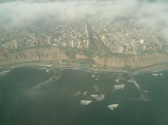 イカの空港から帰路へ、先に飛んでったJTBチャーター機、リマ上空