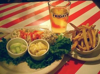 夕食はこれまた馴染みのFriday's、これでも小さめのオープンサンド・・・
