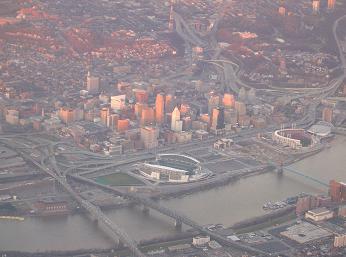 上空からダウンタウンが見えた!、夕暮れのCVG