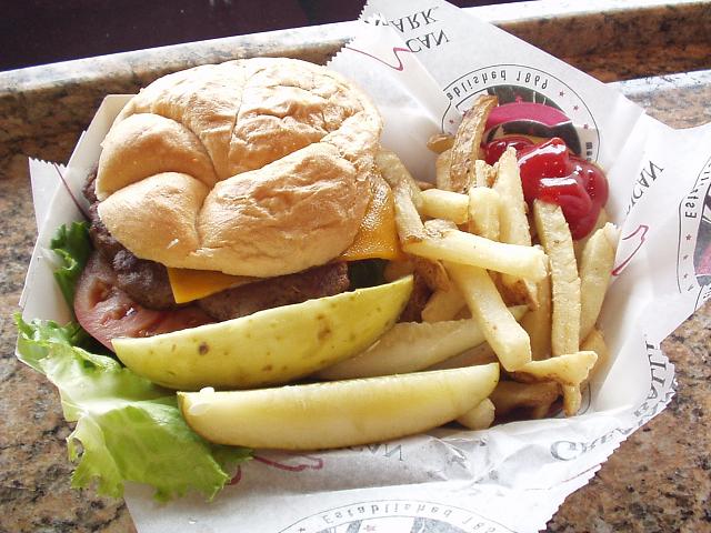 チップをつまみつつ、名物?「ボールパークバーガー」を食べるのがこちらのスタイル。