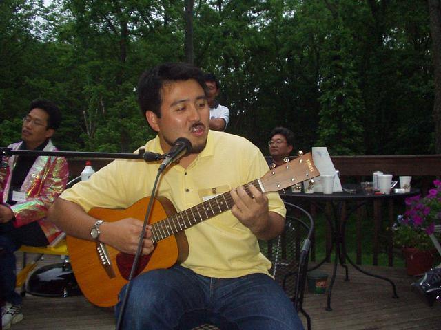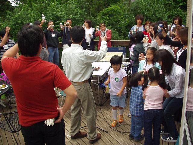 副社長宅のバルコニーで乾杯!、アメリカでも歌ってます、TMMNA調達駐在員+家族全員集合!