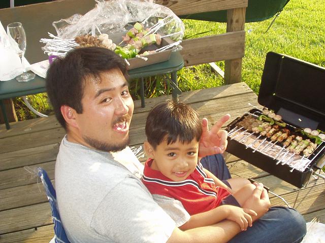 契約社員の岡本さん宅でも小さなパーティーを開いて頂いて、焼き鳥焼きのお手伝い。