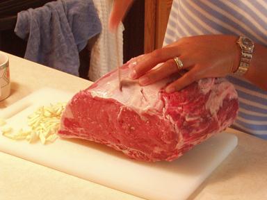 均等ににんにくを刺せるよう、まんべんなく全面に切れ目を入れていきます。